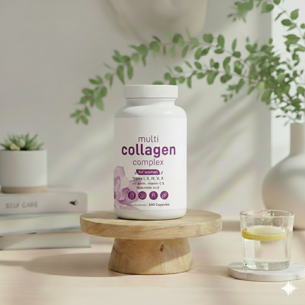 A comprehensive multi-type collagen blend designed to support skin elasticity, joint comfort, and overall connective tissue health as part of a daily routine.